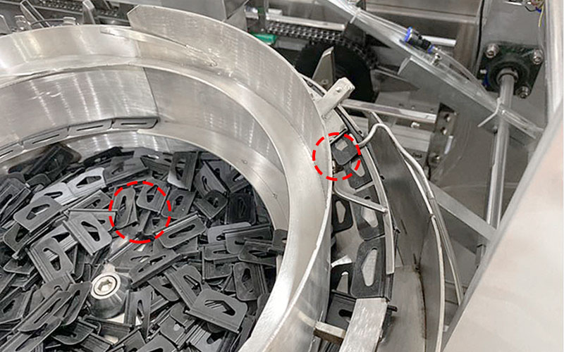 機器傳送帶自動推料口;傳送帶送料到達指定位置自動推料。